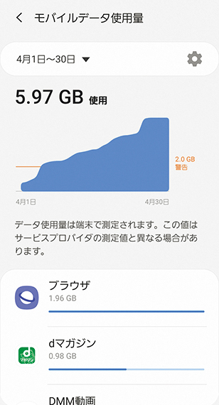 えっ、月6ギガも使ってないの!? 使用ギガを見ると驚愕の6ギガ弱。えぇ~、こんなに使ってないの!?驚きでした。ってかDMM動画、いつ外で見たんだ(笑)!?