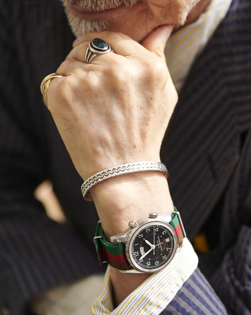 愛してやまない一生モノの一つが、ジラール・ペルゴのトラベラー。慶伊さんが20代の頃に購入したという腕時計です。慶伊さんは現在70代半ばですから、つまりは半世紀の時を共にしてきたということ、まさに一生モノですね~。