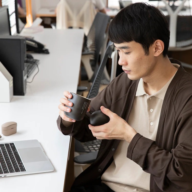 愛嬌のある卵型をしたこちら。じつはデスクで煎茶を呑むことを考えて開発された湯呑みなんです!
