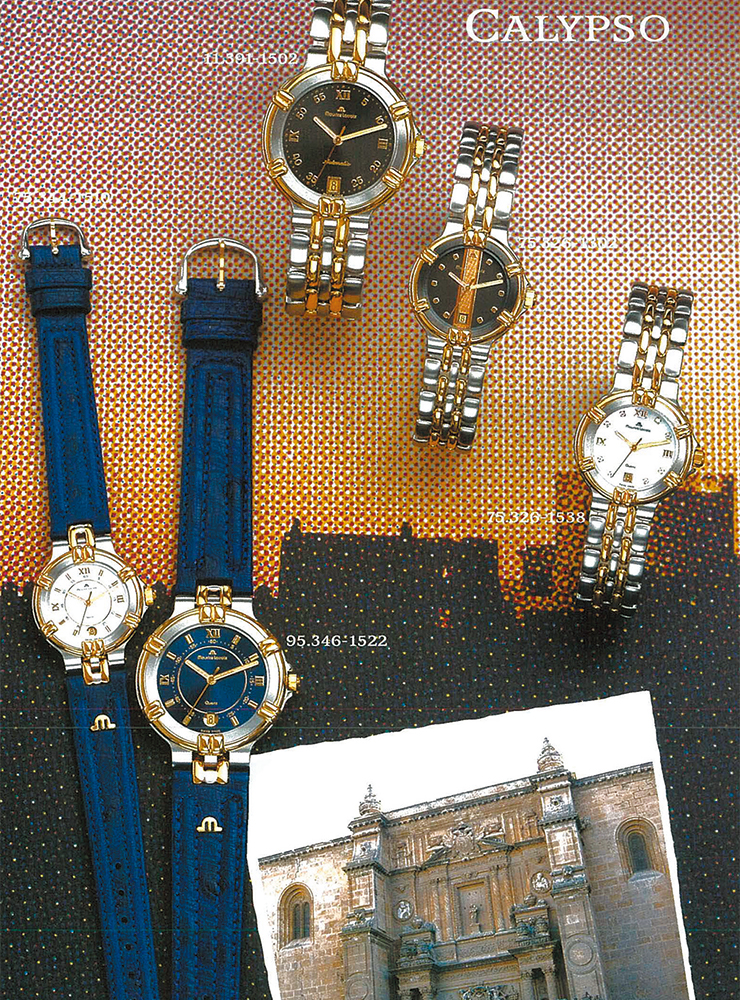 1975年にスイスで創業し、90年代に“カリプソ”をヒットさせたことで、一躍世界的ブランドに。今作はそんな代表作のDNAを継承したラグジュアリースポーツの王道にして、奇跡の良心価格を実現。クォーツ。径40mm。SSケース。各11万5500円。