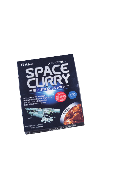 宇宙ステーションの長期滞在用に開発されたレトルトビーフカレー。微重力空間で変化する味覚に対応し、スパイシーで濃い味付けに。また骨密度の低下を防ぐため、通常よりカルシウムを多く配合。吸収を促進するビタミンDやイソフラボンも含まれています。540円(宇宙の店)