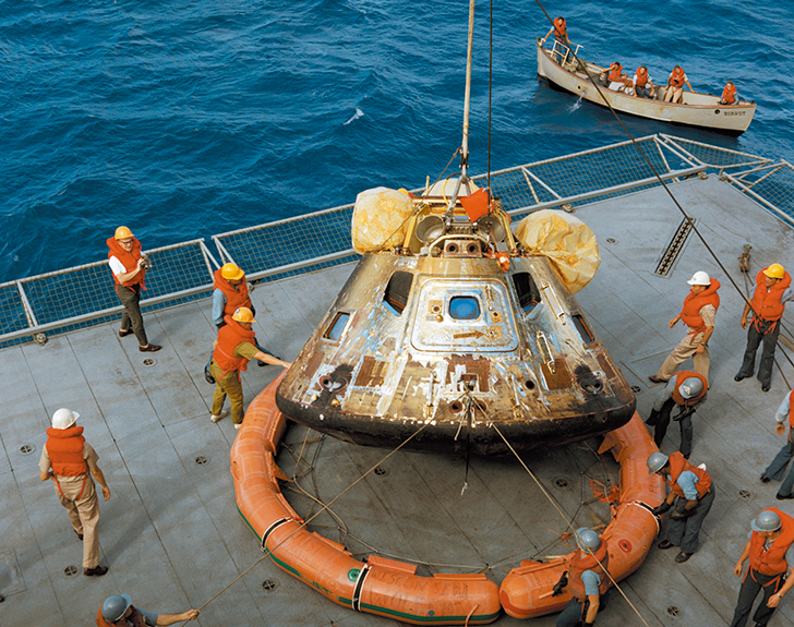1969年、アポロ11号が人類初の月面着陸に成功。その記念に、宇宙船を模した三角形のチョコが爆誕! ちなみに同じ機械を使ってできたのが、きのこの山!