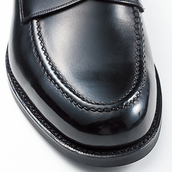 トウに施されたU字形のモカ縫いも、ローファーの印象を決定づける重要ディテール。縫い方にもさまざまな種類がある。