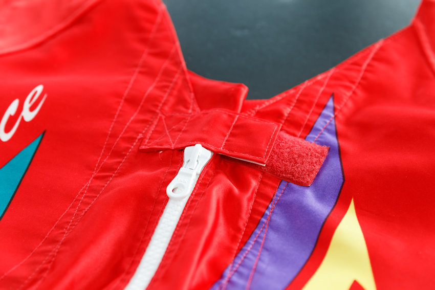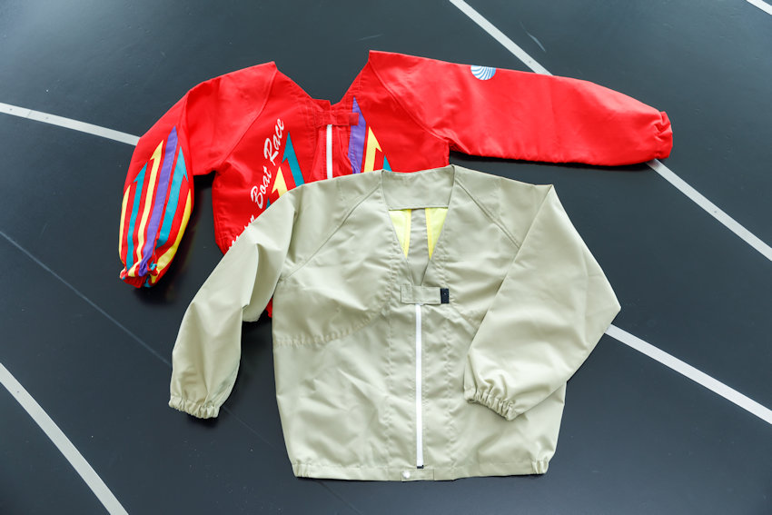 なんとボートレースの選手たちが実際に試合で着用する「レーシングスーツ」をモチーフにしているんです! 過酷なレースが繰り広げられる水上で着るものですから、タフさ&防水性はお墨付きで、この生地でアウターも作れるじゃん!ってことで始まったこの企画。