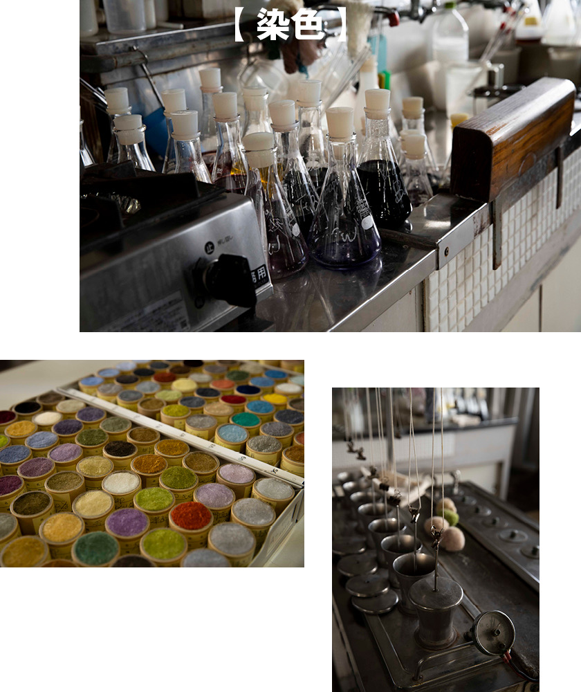 テストが終わったら、高温の染色液に浸しながら糸に色を入れていく。その際、羊毛独特のニオイが工房内に充満するのだが、これも他では味わえない貴重な体験だ。