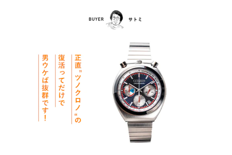 コレは時計好きなら誰もが焦がれる傑作名品! 特徴的なデザインもいいんですけど、正直“ツノクロノ復活”ってだけで男ウケは抜群だと思います! ビギンが別注した“70s REMIX”は、発売当時のタキメーターを復刻し、ネイビーの文字盤にオレンジの差し色効いて、スーツ派にも、カジュアル派にも合わせやすい。2万円台という価格も、ギフト向きだと思います。>>>詳しくはこちら