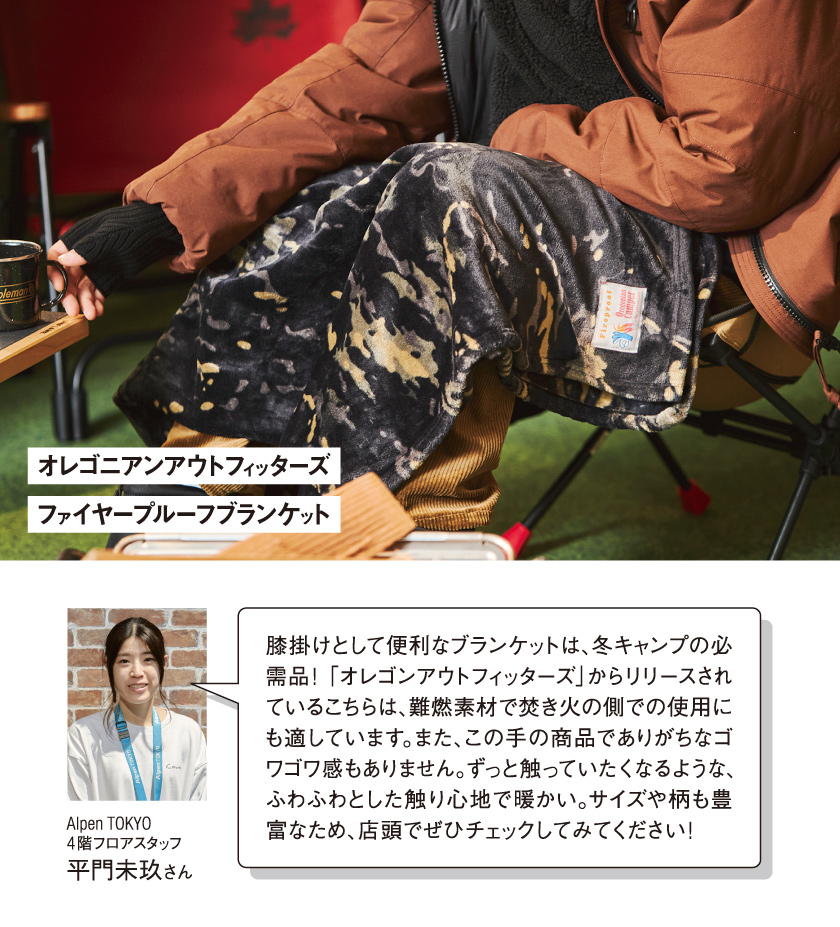 すると、4階・5階のアウトドアフロアも冬仕様に衣替えされており、焚き火グッズやあったか小物がたんまり♡ これさえ読んでおけば、冬のAlpen TOKYO の楽しみ方もバッチリですよ〜♪