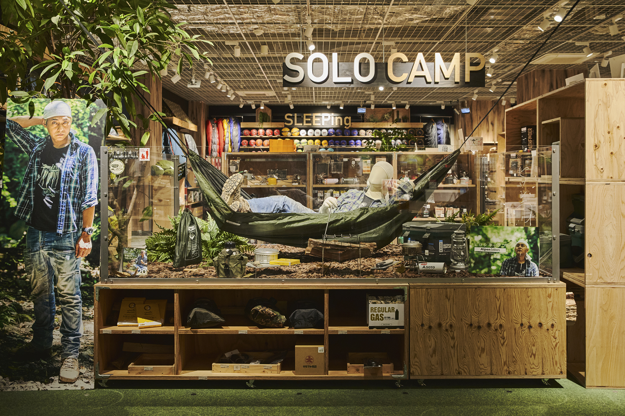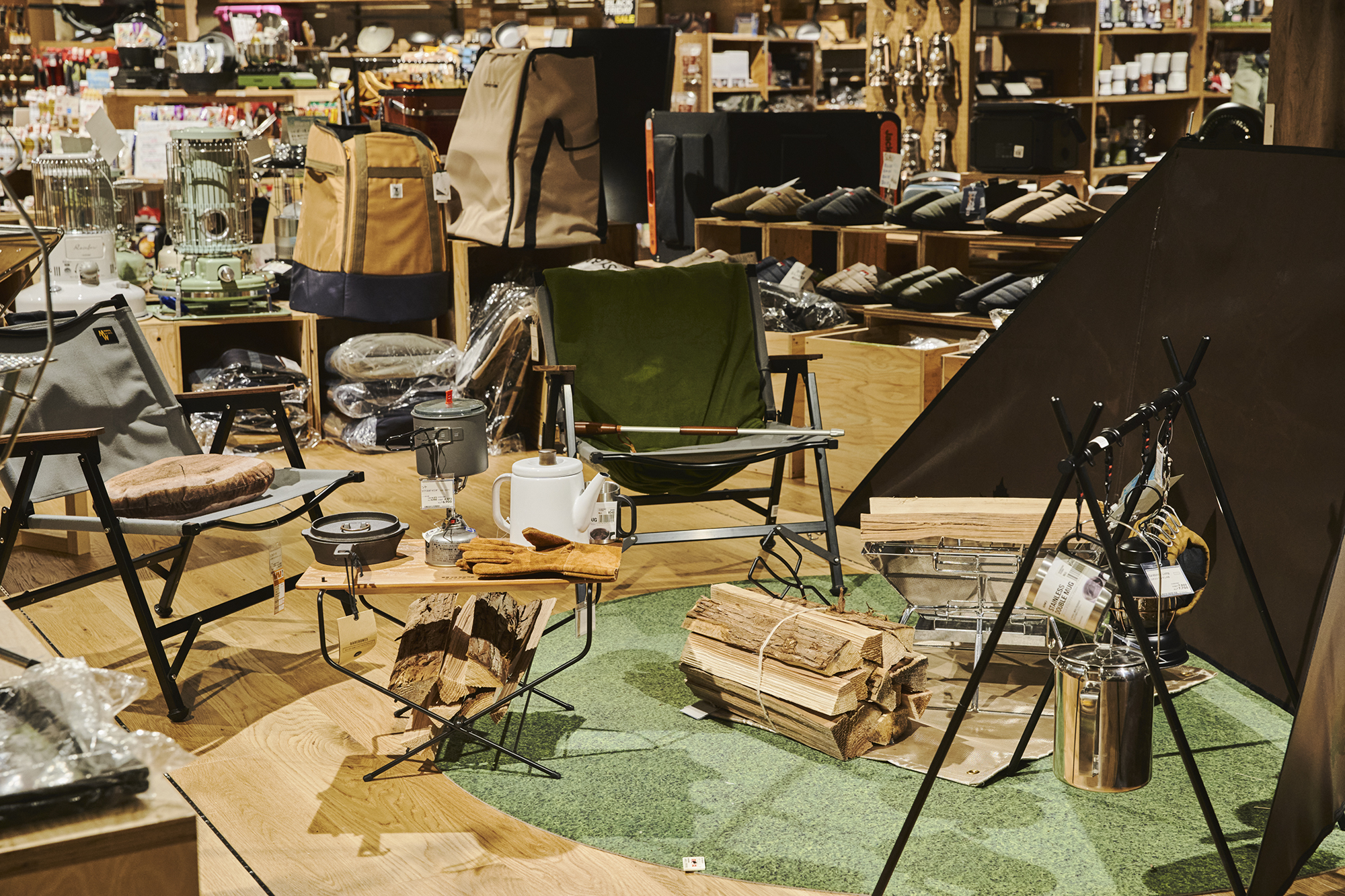 特に注目したいのが、4階のキャンプ用品売り場。寝袋やチェア、キャンプ飯まで、総勢240ブランド、7万点以上のアイテムが揃います。手軽に外遊びを楽しめるデイキャンプの流行に合わせて、ソロキャンプ芸人ヒロシ氏が監修した「SOLO」コーナーにハンモックを使ったキャンプシーンが作り込まれていたり、「TAKIBI」コーナーが拡大し約10種類の薪ストーブが準備されていたり。リアルな冬のアウトドアシーンを想定できるディスプレイに、ワクワクが止まらない!