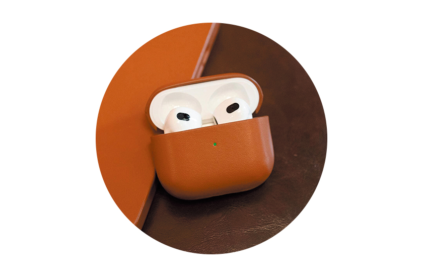 イタリア製の本革を採用した、大人なAirPodsケース。本来のフォルムを邪魔しない薄型で、装着したまま有線&ワイヤレス充電が可能。レザーの繋ぎ目やエッジの処理が美しい。各5280円(ビームス 六本木ヒルズ)