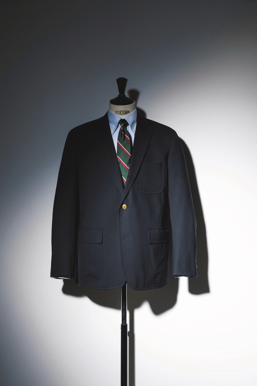 型紙などの資産を受け継ぎながら、すべて米国製で作製。運針までこだわった紺ブレは、初回投入分が即完売したとか。サウスウィックのブレザー11万円、同シャツ2万5300円、同タイ1万3200円