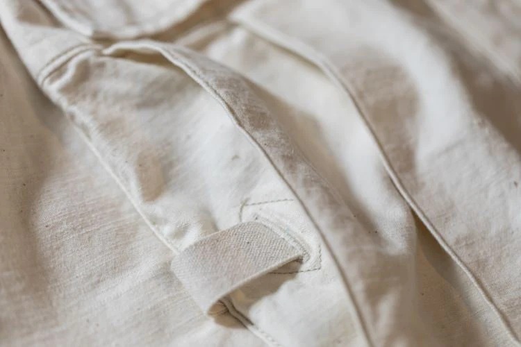 SC111は通常の2倍の量の糸を使ってボタンが縫い付けられています。かなり丈夫で、穿き込んでも解れにくいです。上糸と下糸の糸の太さを変え、裏糸を表糸より細くして生地への負担も軽減しています。洗濯を繰り返すと糸がふんわりとボリュームを増し経年変化も楽しめます。