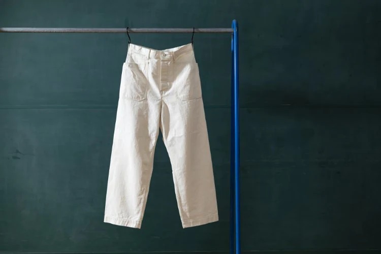 “春夏に相応しい白パン”をテーマに制作された本作。元来の骨太な印象をキープしながら、すっきりと見えるシルエットに調整しています。履き心地はとっても軽やかで、穿けば穿くほどふっくらと柔らかくなっていき、ヴィンテージの風合いに育ちます。