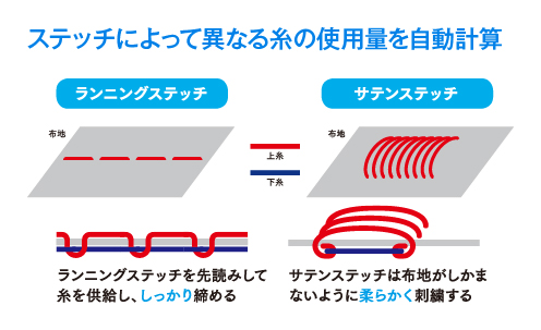 「従来の刺繍機はミシン前面のツマミを回して糸の供給量を決めたり、布押さえもカバーを外しドライバーでパーツを上下させる必要があって、どうしてもオペレーターの経験差が出たんですね。AI搭載機はその点を改善しました。刺繍機は1分間に1000回針を落とすんですが、新開発した『i-TM』は刺繍データと生地の厚みからAIが一針毎に調整します。刺繍は様々な縫い方で柄を表現しているんですが『i-TM』はランニングステッチはしっかり、サテンステッチは柔らかくなど、それぞれのステッチにおける最適な糸の使用量を計算し、それによって、経験がなくても美しい表現ができるようになりました。お客様からも仕上がりが全く違うという声を頂いています」