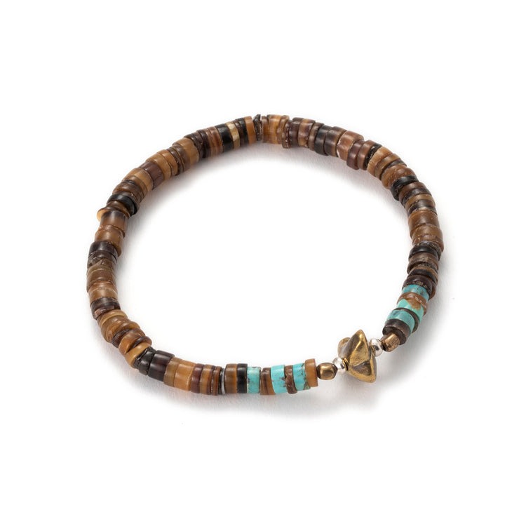 天然石の中でとりわけ夏らしいターコイズを贅沢に使った一本。シルバー925の美しいビーズとヴィンテージ感のあるブラスビーズが絶妙なアクセントになっています。
