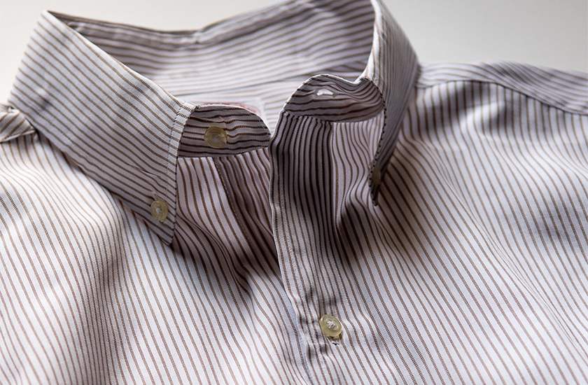 「現在はフロントが7ボタンのシャツが主流になっていますが、ブルックスは’80年代頃まで6ボタンのシャツを製造していました。これが7ボタンに比べてクラシックな趣があって着用したときの印象も違うことから、“オールドブルックス”として別格扱いされてるんです」。