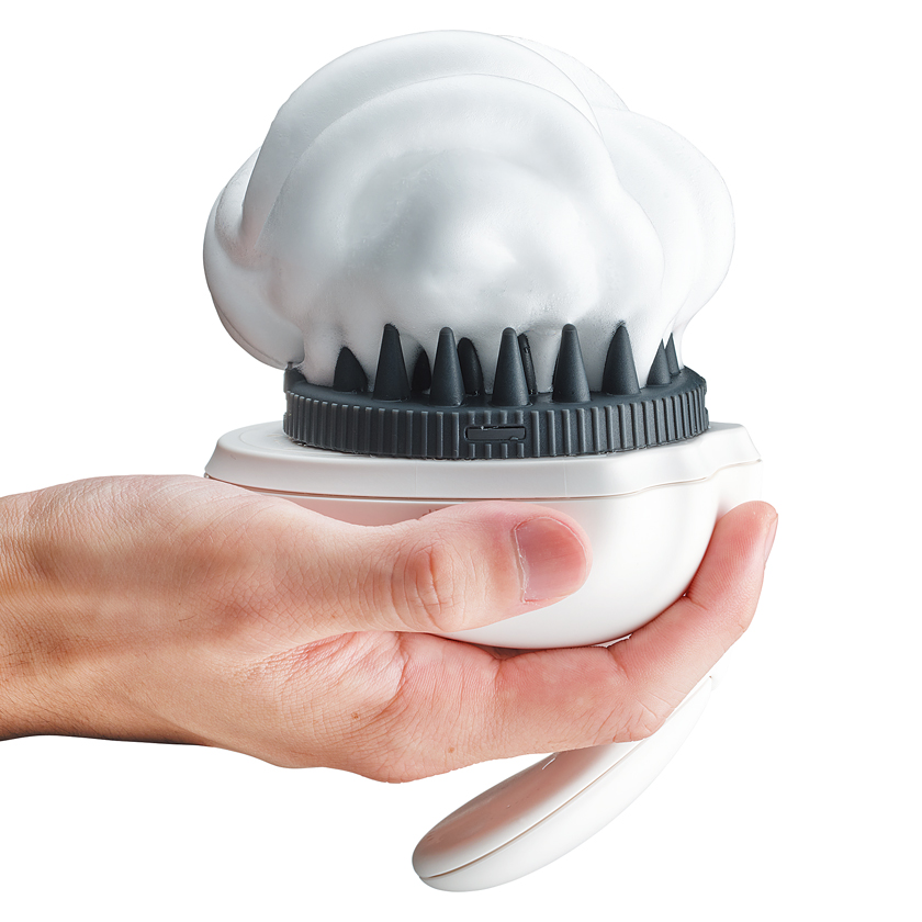 で、できたのがこちら「アワニスト」。ブラシに専用シャンプーを注入すると15秒でキメ細かいマイクロ泡を生成。さらにブラシは振動し、頭皮に当てるとサロンのシャンプーばりに気持ちいい♡ わずか3分で楽々キレイに洗える♪ スカルプケアを習慣づけるにも、うってつけだしん!