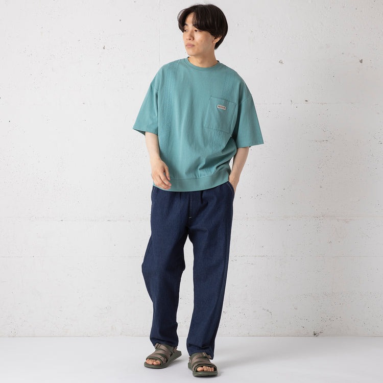 古着屋さんに置いてあってもおかしくないような、リアルなウォッシュ加工が施されているんですが、ガチ古着デニムと違って柔らか~い質感。それがイージーパンツのフリージーと掛け合わされたもんですから、骨太な印象もありつつ、着心地はあくまでイージーなんです♪