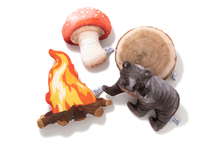 丸太、キノコ、木彫りの熊、そして焚火。インパクト大なアウトドアモチーフのデザインもかわいい♡ いずれも外遊び気分を盛り上げてくれるに違いありません!!