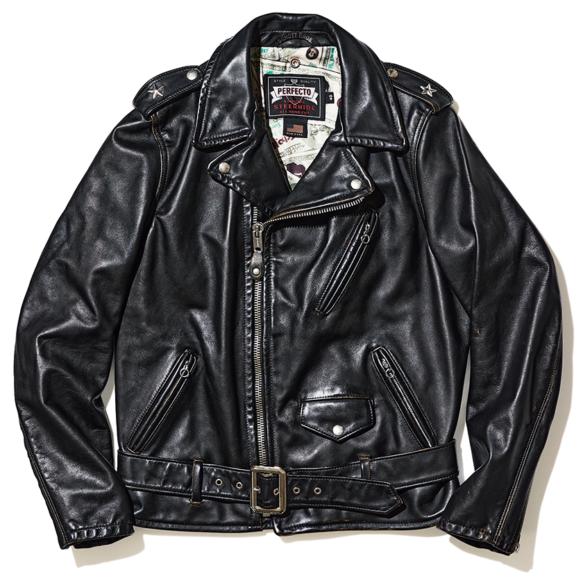 ショットは1913年にニューヨークで創業。1928年にボタンしかなかったライダースの前立てに、世界初のジッパーを採用します。このPerfectoシリーズが世の雛形となり、今日に伝わるライダースの礎を生み出しました。