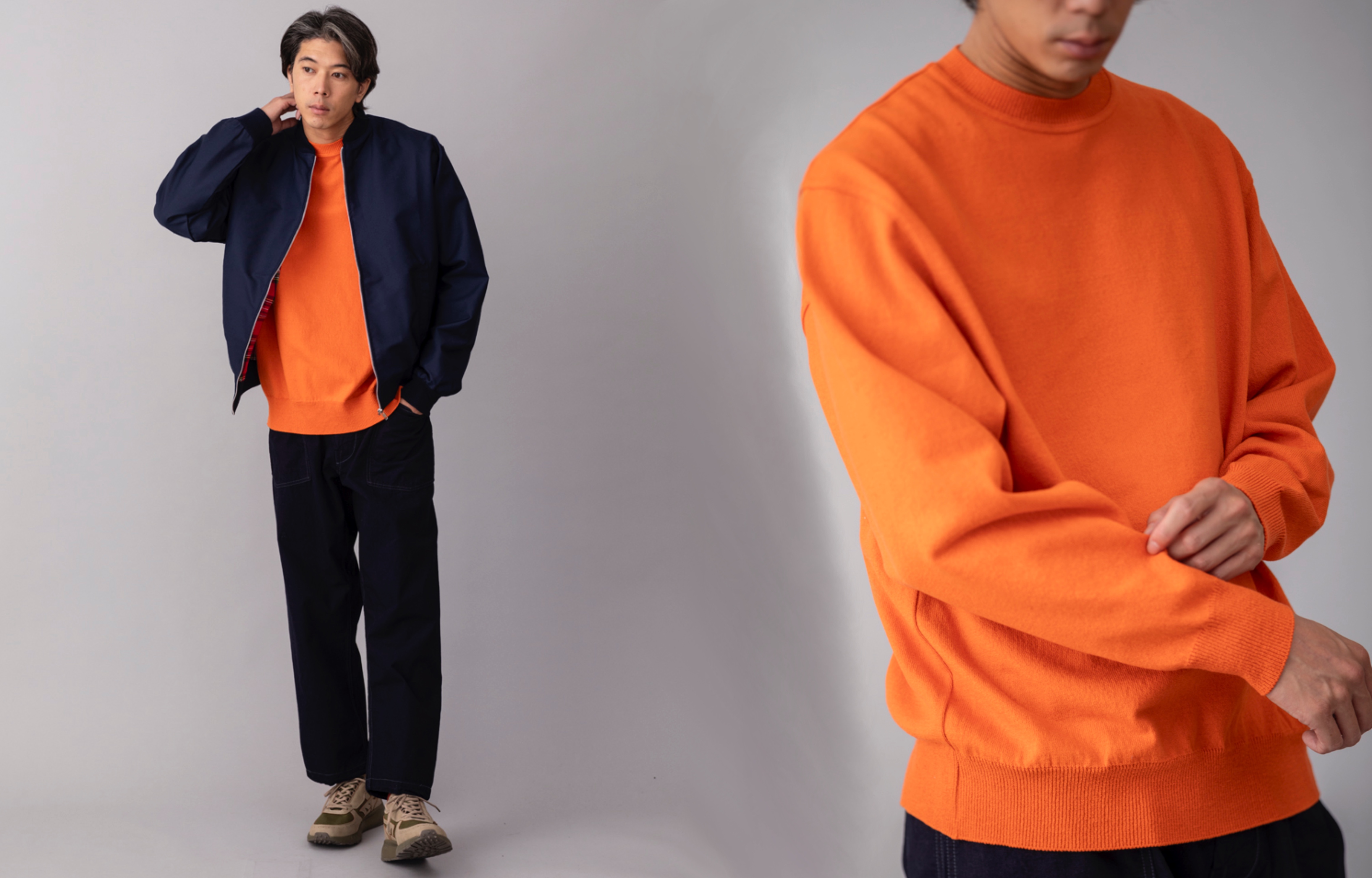秋の味覚を楽しみにしている「食ツウ」を「美食家」と言うならば、肌寒い時期にインナーニットでどうやって差し色を効かすかにこだわった「服ツウ」は「美“色”家」と呼べるのでは? そんなニット選びにおける美“色”家をきっと満足させてくれるような発色抜群のクルーネックセーターをご紹介♪ セーターと言ってもこちらは、特殊な「強撚ウェーブコットン糸」を希少な旧織機でゆっくり編むことで、かなりしっかりと目の詰まった生地に仕上げた逸品。強撚糸を密度増し増しで編むからこそ、抜群の光沢と発色が備わるのです。山形の名門ニッター「米冨繊維」が手掛けるからこそ可能な、特別に手のかかった仕上げの一着なのです!