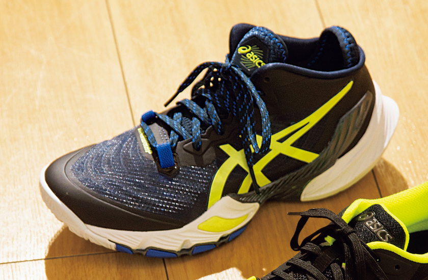 アウトサイドヒッターやミドルブロッカーが、より高くジャンプできるよう設計。ミッド&アウトソールに反発性を追求した独自素材を内蔵し、着用時のフィット感も文句なし。日本代表のオポジット、西田有志選手着用モデル。2万5000円。