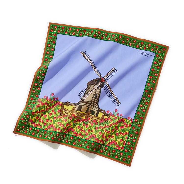 オランダといえば風車とチューリップ。爽やかなブルーカラーはチーフ替わりにして紺ブレにも◎。