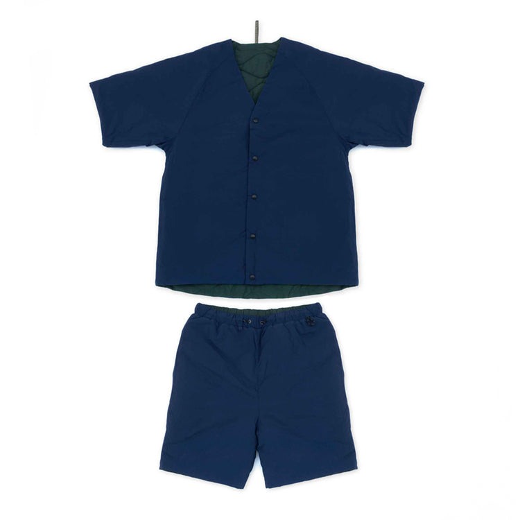 日本の伝統着、はんてんの形状や特徴をデザインに落とし込む「ダンテン」。こちらは「コンビニまで晩酌用のビールとつまみを手ぶらで買いに行く」をコンセプトに、ハンティングジャケットのディテールをプラスしたハンターダンテンです。