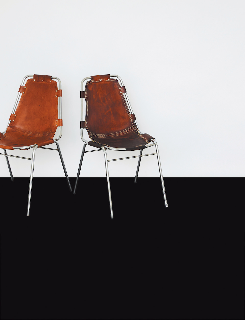 デザイン的にもペリアンが選ぶだけあって、さすがの格好よさ。スチールにカシメで留めたレザー張りっていうのも攻めてると思うし、上品だけど無骨でいいバランス。細めのスチールの使い方もモダンで、このへんはイタリアらしいデザインっていうことなのかな。スタッキングできて、重ねたときにも絵になります。