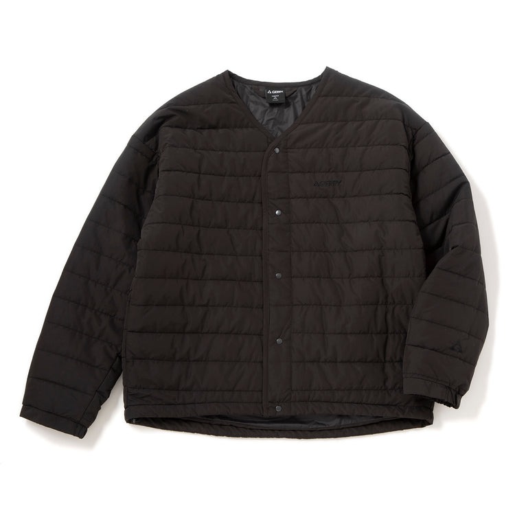 スッキリとした薄めのつくりでインナーとして重宝。細かいステッチで中綿がズレにくく、オマケにシワになりにくいのも嬉しいポイント。首元はスッキリとしたVネックです。
