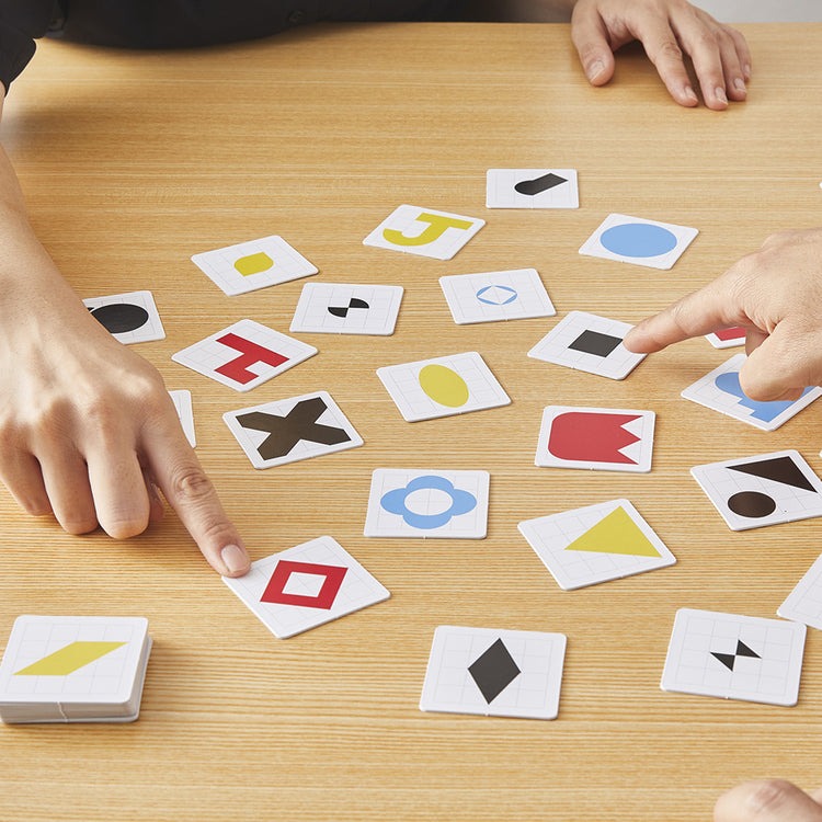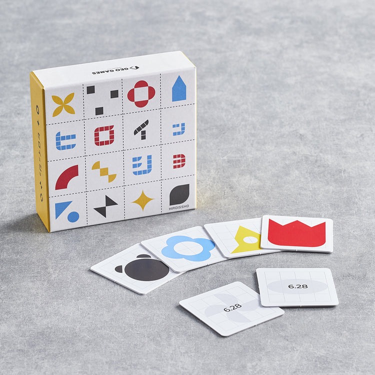 お題の面積をピッタリ当てる、瞬発力と判断力が試されるカードゲーム。お題のカードは全部で10枚あり、その裏には面積を表す数字が書かれています。そして30枚の取り札の中から、お題と同じ面積のカードを選ぶ、というゲームです。