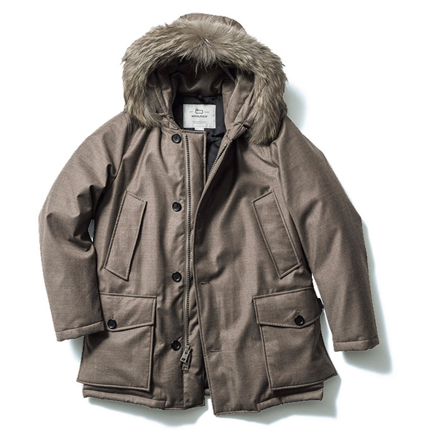 凍土で作業員が着ているダウンは、70年代にアラスカに天然ガスパイプラインを建設する際に誕生したアークティックパーカの後継版。新作は伊のロロ・ピアーナ社のウールシルク生地を採用し、よりオンオフ兼用へと進化した。22万円(ウールリッチ 二子玉川店)