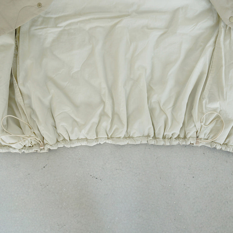 半端者!と言われると侮辱された気分になりますが、ことダンテンの「DAN-TENコンフリーショート」に関してはこの半端さが売りなのです。見てくださいこの五分の袖丈。一見寒いんじゃないの?と思うかもしれませんが、この手の中綿アウターは手首まで袖があると手元で作業をするときに引っかかるんですよね。その点本作は、デスクワークも料理や洗濯などの家事の際にも邪魔になりません! しかもパッカブルなので、オフィスなどに持っていくにも超便利なんですね♪