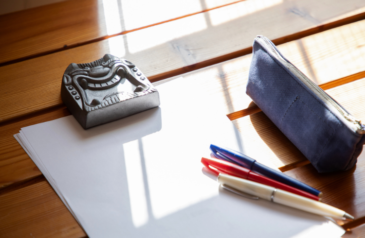 小さいながらも瓦ならではのずっしりとした重さがあるのでペーパーウェイトとしての使用もおすすめ!書を嗜む人なら、文鎮とするのもいいですね。いぶし銀の色合いは案外と主張しすぎないので、本作は置き物として、鬼瓦本来の厄除け魔よけ効果に期待しつつ、玄関や書斎などに飾るのもアリです。