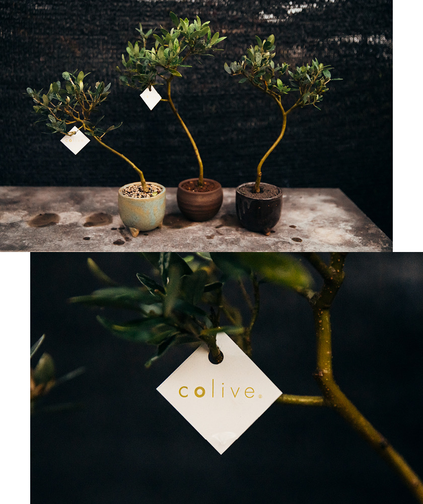 さらに、固定概念を覆す形の盆栽に出会えるのも醍醐味。「盆栽って、どこか敷居が高いイメージをお持ちの方もいると思うのですが、肩肘張らずにただ単純に楽しんでもらいたくて、最初は数字の形をした盆栽を作るところから始めたんです。試行錯誤を繰り返しながら、今ではローマ字やハートなどバリエーションも徐々に増やすことができています。また、最近では小豆島名産のオリーブの盆栽も作り始めていて、小さいオリーブで“colive”って名づけました(笑)」と花澤さんは、大きな笑顔で話してくれた。