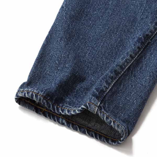 そしてデニムのヴィンテージの風合いを再現するため、糸から製作するというウエアハウス。「G‒3」という半世紀前の力織機でデニムを織り、アーカイブをもとにレーザーにプラスしたオリジナル加工を施すなど、そのコダワリは群を抜きます。しかも、裾は1950年代の米国で広く使用されるも、今では希少となった工業用裾縫いミシン「ユニオンスペシャル」で「チェーンステッチ」を掛けているというこだわりよう。針が斜めに入る仕様と巻き込みの強さにより、独特のねじれを生むみ、穿き込むと強い縄目状のアタリも楽しめるのです。