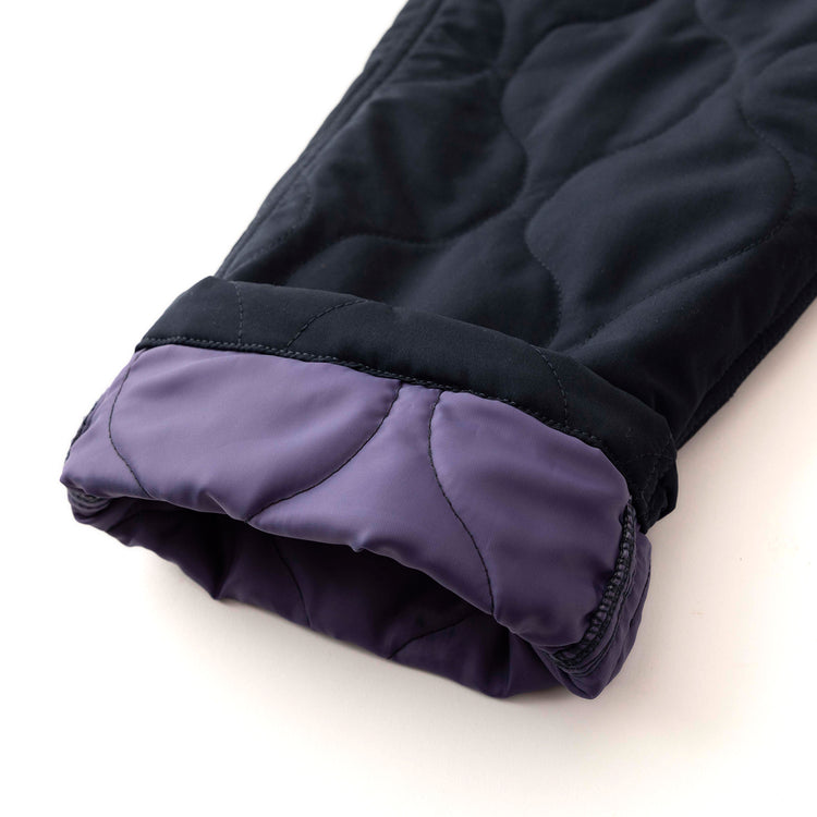 タテ向きひょうたんキルトがスッキリとした印象を後押しします。街でも自宅でも、大人っぽく品よく着られるBeginだけのネイビーカラーで別注。別注だけのパープル裏地がミニマルな下半身の差し色にも♪>>>商品はコチラ