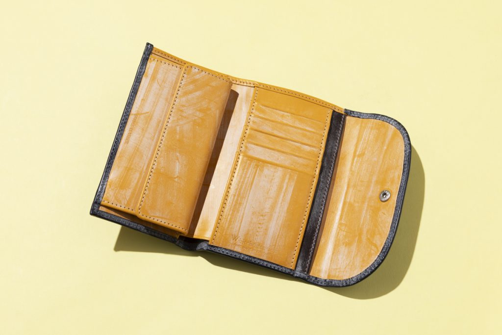 ホワイトハウスコックスの大定番にして、英国伝統ブライドルレザーの魅力を多くの人に刷り込んだ最大の功労者ともいえる“3つ折り”をベースに渾身別注した本作。なんと、内部レイアウトを反転させちゃったんですね。さらにフラップの開きも右にしたことで右利きの人の使い勝手が急上昇。これ、ビギンだけの特別仕様です。