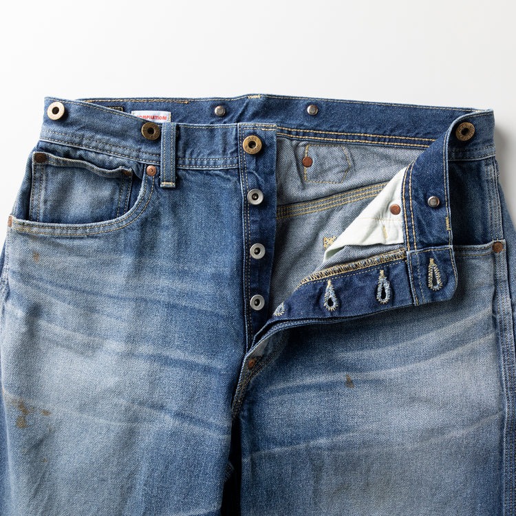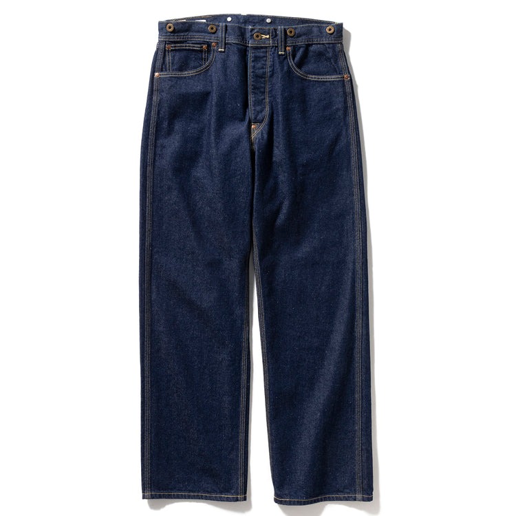 Leeのカウボーイパンツのデビュー100周年を記念に販売したカウボーイデニムパンツ。オーセンティックなレギュラーフィットに、30年代のディテールを再現しています。デニムのセットアップや、シンプルなカットソ―とサスペンダーでの合わせなどがおすすめ。13オンス本格的な右綾のデニム生地を使用しており、青サビ加工のリベットなど、細かい芸もアッパレ!