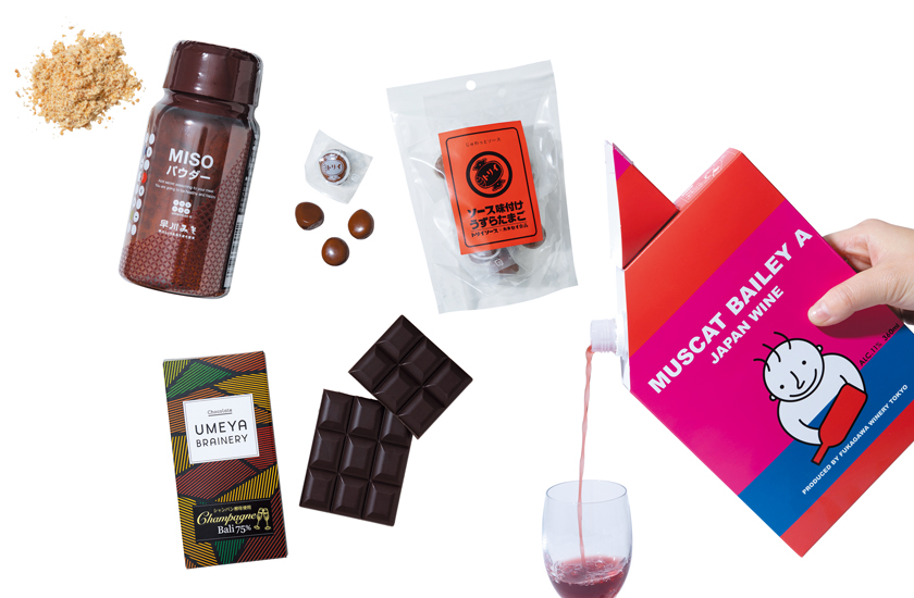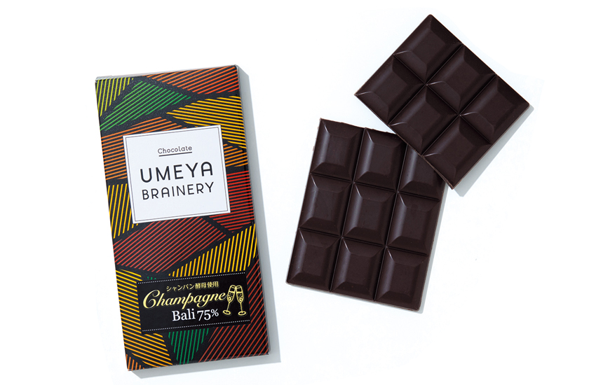 カカオ豆とキビ砂糖のみで作ったこのチョコレートは、発酵にかかる時間を減らし、通常にはない味わいをもたらすシャンパン酵母菌を使用。より強いカカオ豆の旨味やフルーティな風味が楽しめる。さらにチョコに含まれるテオブロミン成分で疲労回復、カカオポリフェノールで花粉症の症状緩和にも期待。1300円(UMEYA BRAINERY)