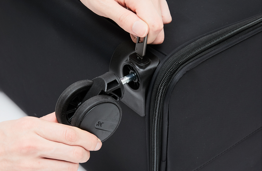 これがクロ隠れたるワケなのです。こちらは変形トロリーで人気のイスラエル発のメーカーの最新作。折り畳みでありながら、耐衝撃性や生地の防水耐久性に優れ、旅行や出張で壊れる心配はありません。