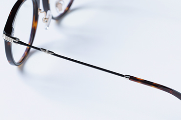 幅の狭いプラスチックフレームと華奢なチタン素材のテンプルの組み合わせが、控えめながらも存在感を感じさせる一本。剛性としなやかさを兼ねた合金のβチタンテンプルは、着用のストレスも軽減させてくれる。さらに、メタルの冷たさが知的な印象を与え、ビジネスシーンではウケ間違いなし。2万8600円(デリーゴジャパン)