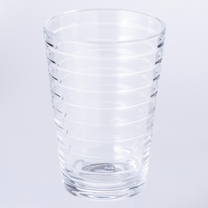 水面に広がる波紋に着想を得たというボディを飾るリングが印象的なグラス。アイノ・アアルトが残した傑作デザインのひとつで、ミラノ・トリエンナーレ展では金賞を受賞。それでいて重ねて収納できる実用性も兼備。容量220l。ペア。3300円(イッタラ)