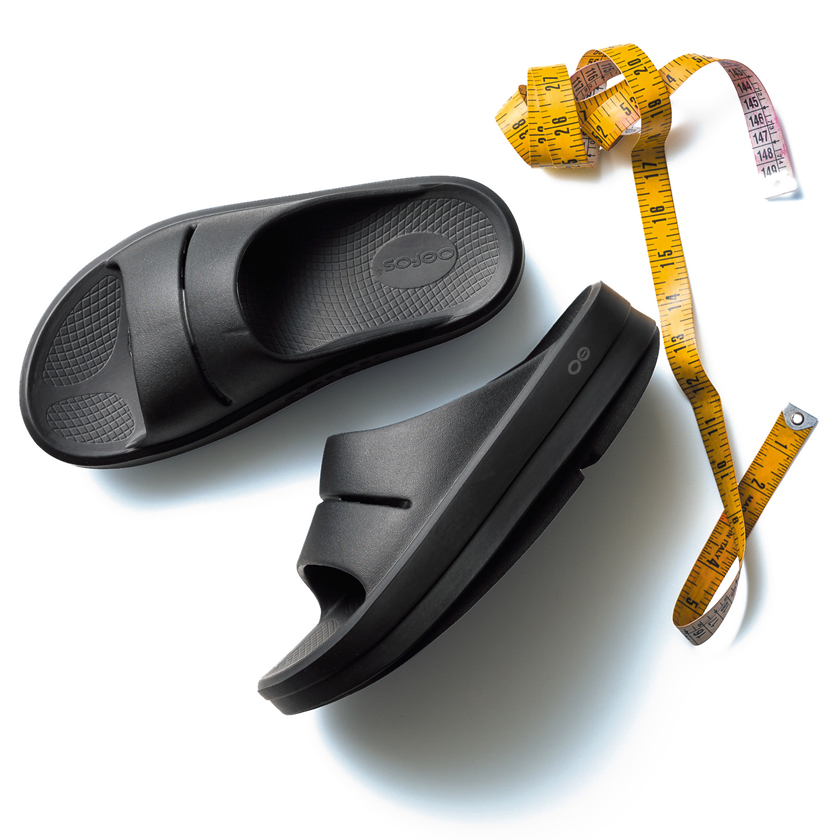 サンダルならウーフォスの「ウーメガ ウーアー」。通常のEVA素材とは異なり、37%の衝撃の反発を抑えるウーフォームの高さを15mm増やし、スタイルアップを狙える! ちなみにもとは女子から大人気。そんな一面でも、よきオマケがあるかもしれません♪