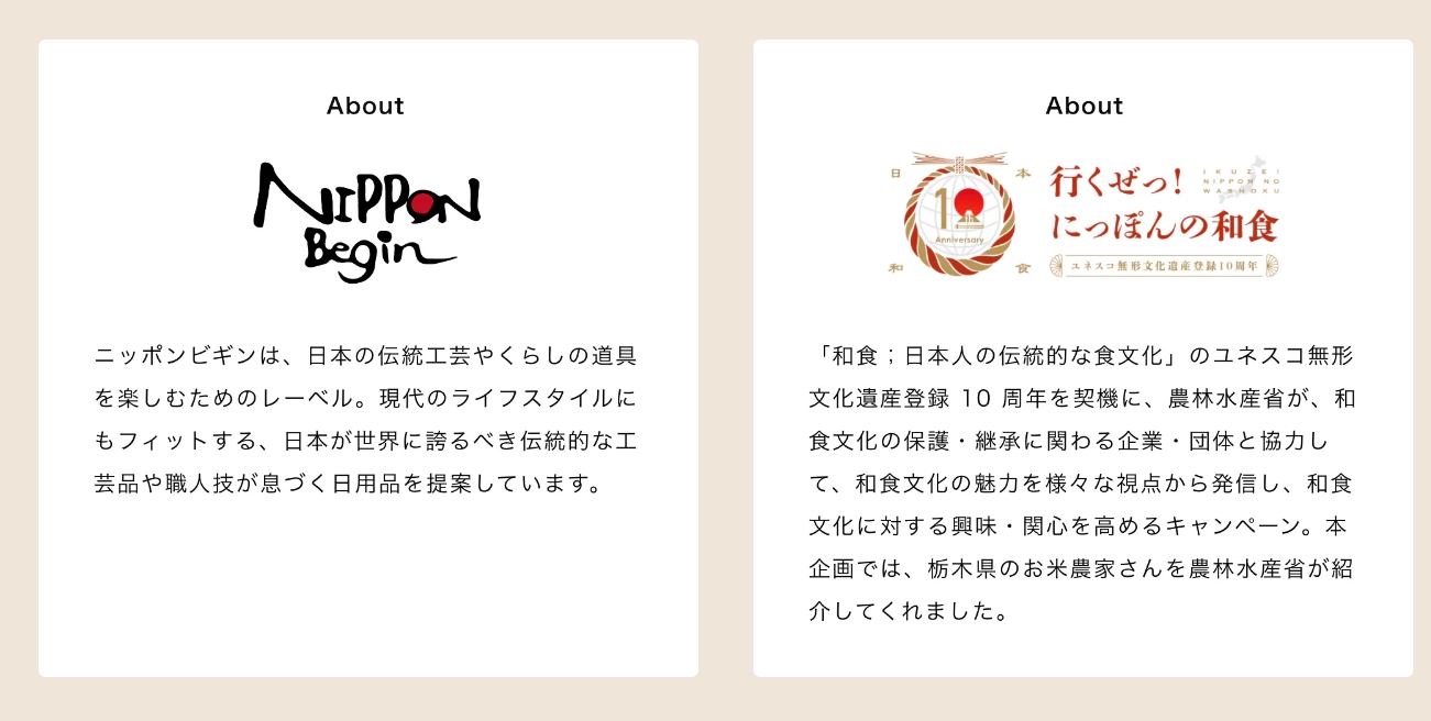 このおにぎり皿企画は、日本の伝統工芸やくらしの道具をデイリーに楽しむレーベル「Nippon Begin(ニッポンビギン)」のスタッフのノリと勢いと情熱(もちろん職人さんや生産者のみなさまの情熱もたっぷり)が詰まっているのですが、実は農林水産省が実施している「行くぜっ!にっぽんの和食」キャンペーンの一環でもあったりします。