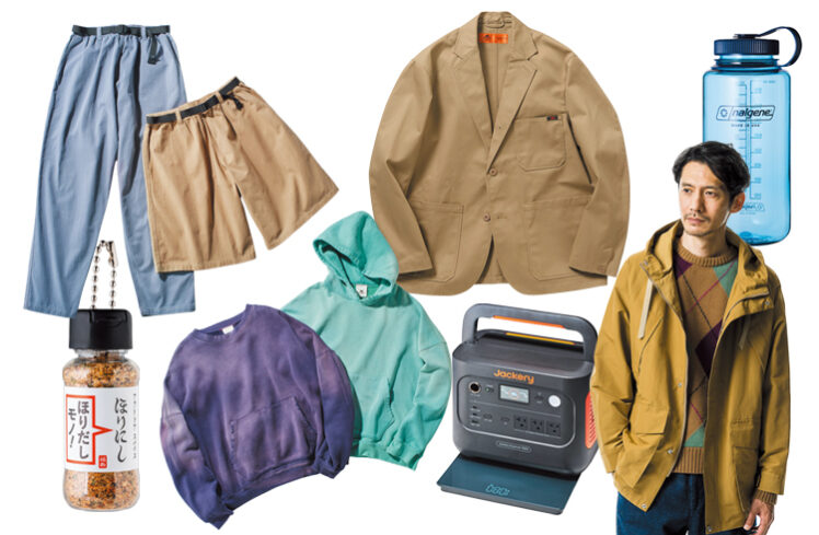 いよいよ撮影本番。スタイリングを済ませて登場したサトウさん、モスグリーンのジャケットやエッジの利いたニットシャツがとてもお似合い。洒脱さとともに、今年59歳という年齢にも見合った包容力をも感じさせるコーディネートです。