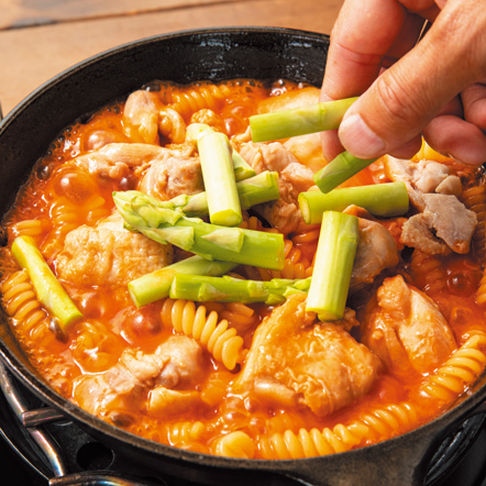 「チキンの旨味がギュッ♪ スキレットお得意のワンポットパスタをご賞味あれ」