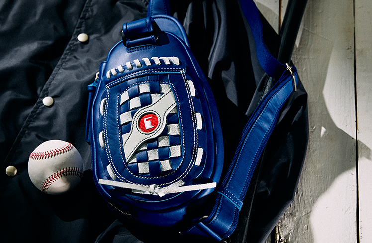 イタリア製のバケッタレザーと耐候性に優れたネオバチュー・クロスをコンビ使い。探検会社で使っていた名車「ディフェンダー」に施された社名デザインを再現し、前面に配した特別仕様。W41×H27×D14.5㎝。25万3000円(ハンティングワールド帝国ホテル店)
