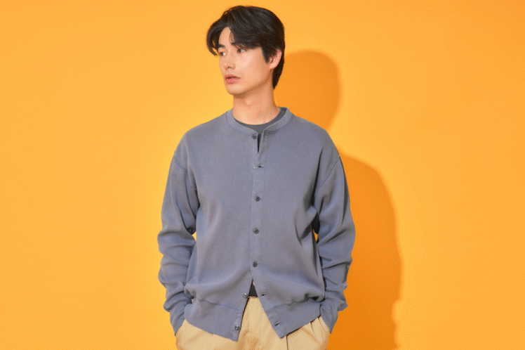 濃淡を出しながらグラデーションも出す、ホワイトとインディゴのカラーリングが爽やかな一本。製品前の段階から加工を施したボタンなど、細部へのこだわりもあっぱれ!