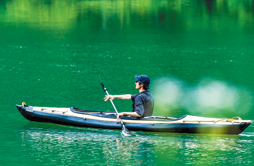 まずはキャンプにハマり、+αなアクティビティは何かないか? と興味が湧いていたとき、乗せてもらったカヤックに感動。タクティカルな見た目と折り畳める点が気に入って、2年前にゲットしちゃいました。安い買い物とは言えませんが、そう壊れるモノではないですし、リペアもできて、楽しみ方も色々で歳を重ねても遊べる。これぞまさに一生モノだと思ってます。もともと大好きな湖という場所をより体で感じられるのも醍醐味ですね。