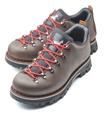 パラブーツを有するRP社が手掛ける登山靴ブランドが待望の再始動。仏でごく少数のみ販売されているモデル「スーパーガイド」を下敷きに、アッパーには仏リモージュのリムーザン牛を鞣したフルグレイン・レザーを採用。そこに防水透湿メンブレンや軽量のビブラム社と共同開発を行ったソールを組み合わせることで、快適性を高めている。ミッドカット9万2400円、ローカット8万1400円。